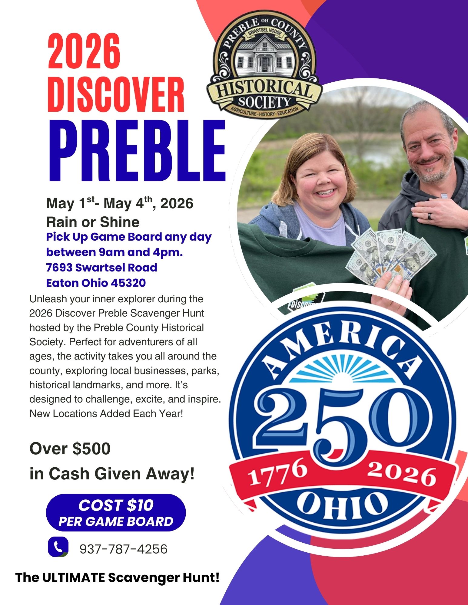 Preble County is proud to join America 250 – Ohio, a statewide celebration honoring 250 years of American history and the stories that continue to shape our communities.